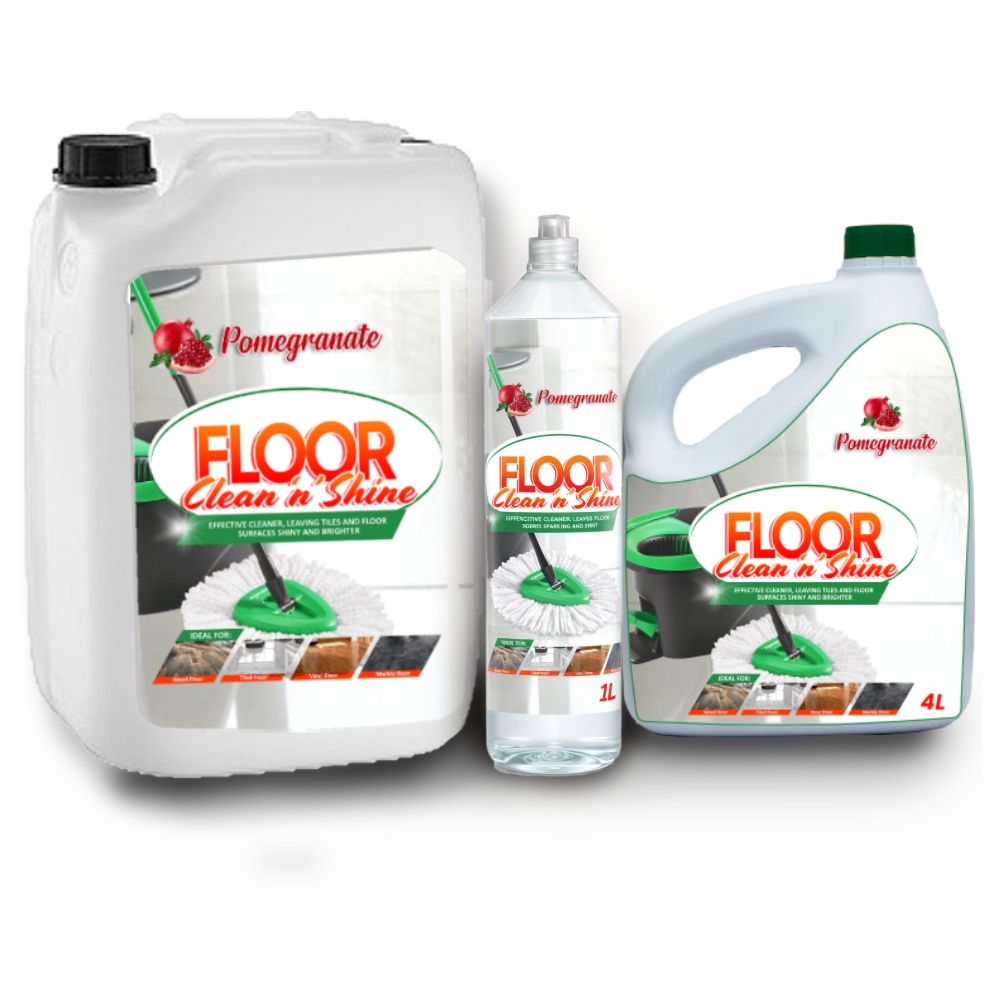 Pomegranate Floor Clean ‘n’ Shine is a high-quality, multipurpose neutral floor cleaner and maintainer specially formulated for both domestic and commercial cleaning applications. It is designed to effectively clean, protect, and enhance the appearance of various floor surfaces while maintaining their natural shine and durability.